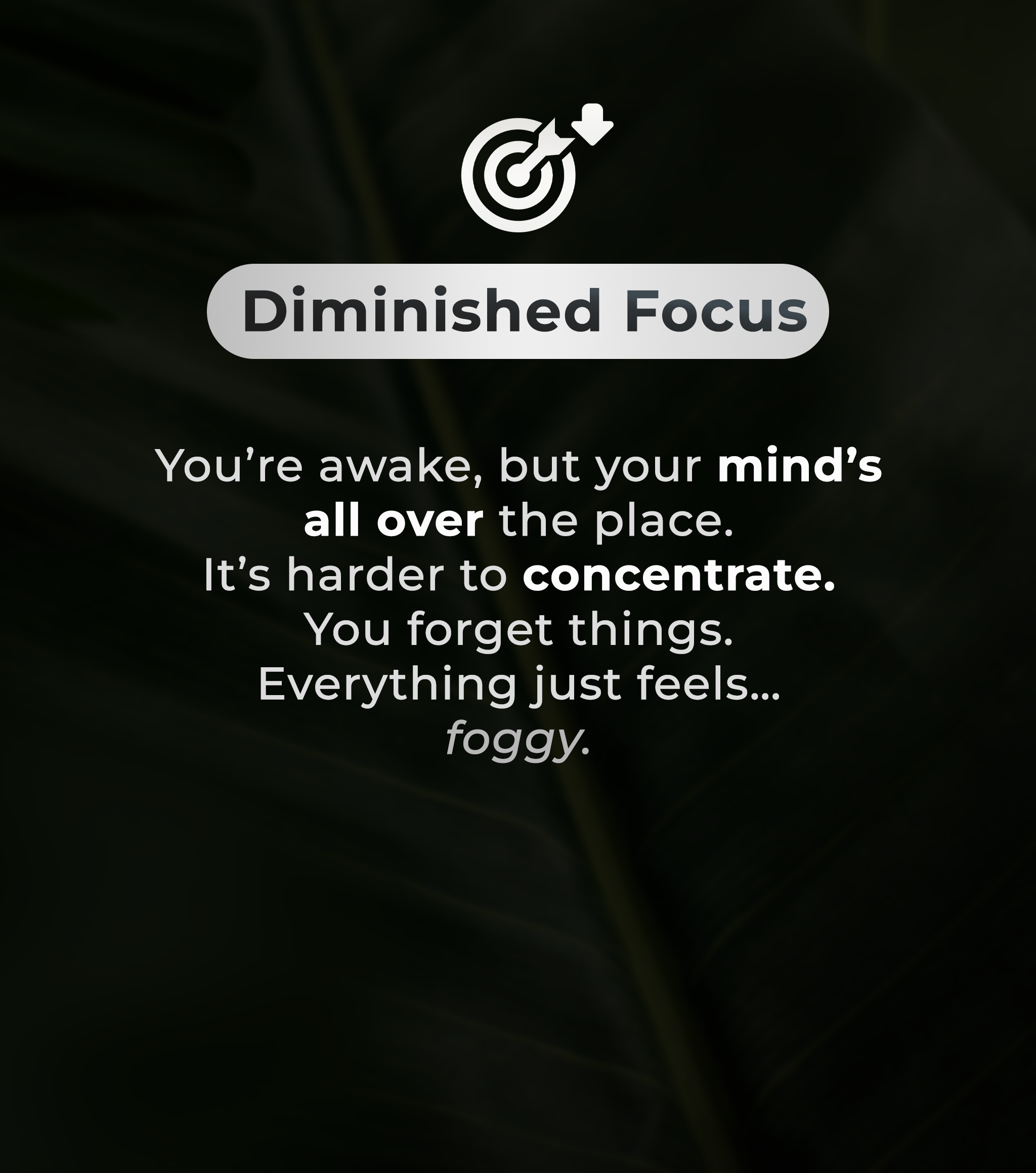 Concentration takes effort. You forget what you were doing. The day feels scattered before it’s even started. This is what sleep debt does — it messes with your cognitive clarity and short-term memory.