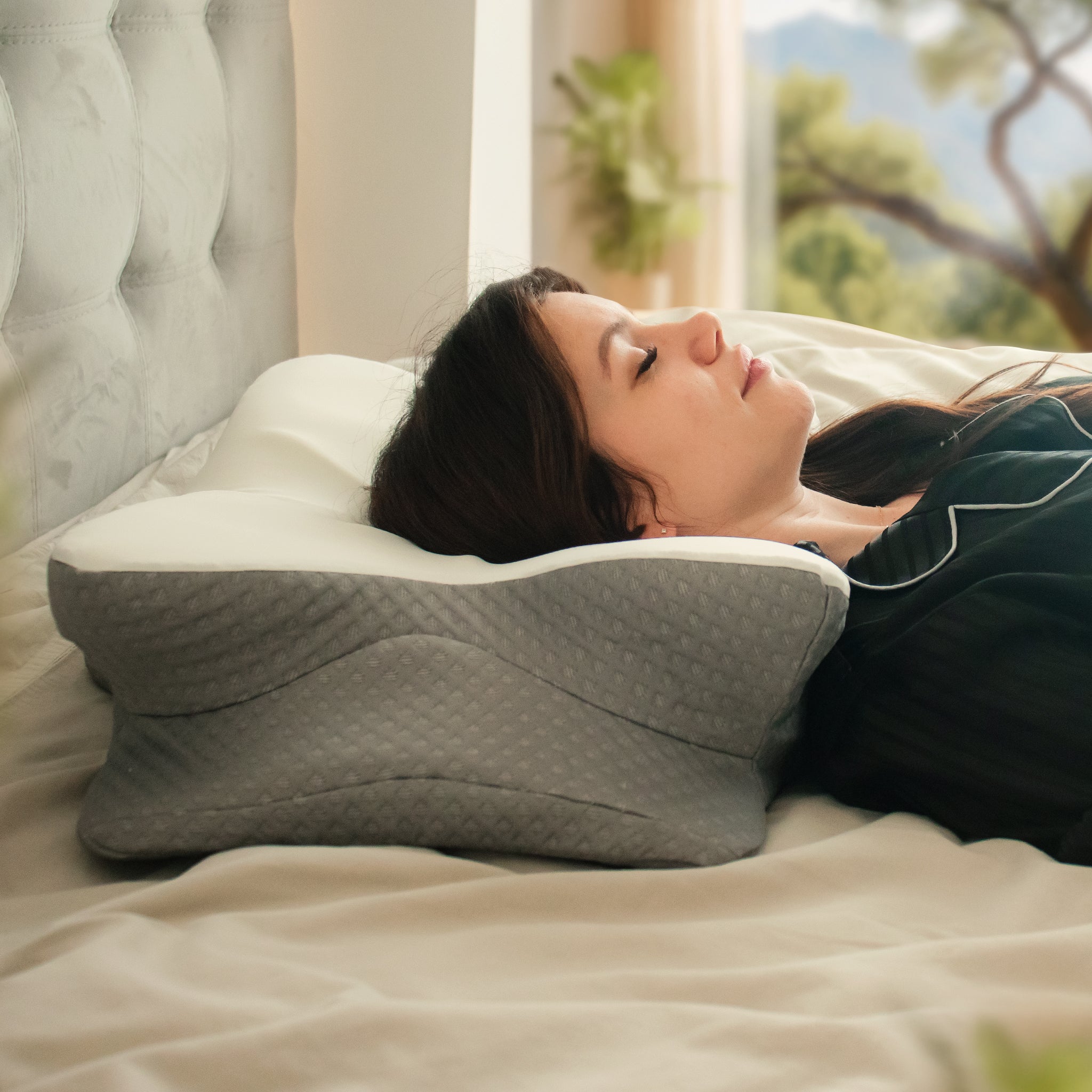 The unique ergonomic shape supports your neck, shoulders, and spine in perfect alignment. It reduces strain from the moment your head touches the pillow. You’ll feel lighter when you wake up, without that usual tension in your neck or upper back.